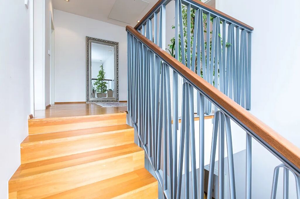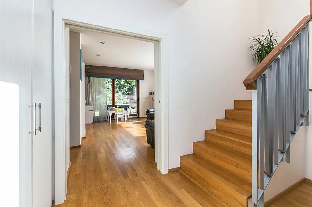 V patře se nacházejí tři ložnice a samostatná prostorná koupelna. Hlavní ložnice má navíc vlastní koupelnu se sprchovým koutem a toaletou. Ze dvou ložnic je přístup na balkon s výhledem do zahrady.