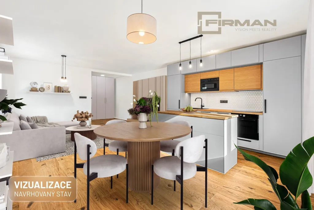 Dispozice nabízí komfortní obývací prostor s novou moderní kuchyní, která plynule navazuje na zbytek bytu a vytváří přirozené centrum dění. Samostatná ložnice je klidnou zónou pro odpočinek a soukromí a pracovna pak přináší praktické zázemí pro home office, kreativní činnost nebo úložný prostor navíc – podle vašich potřeb.