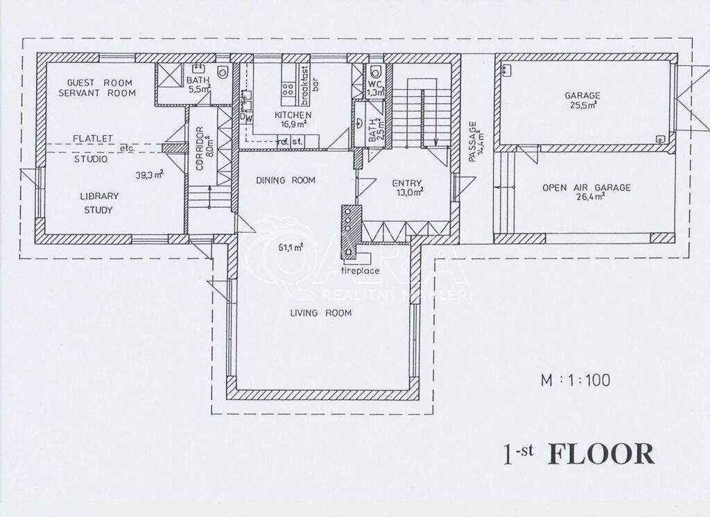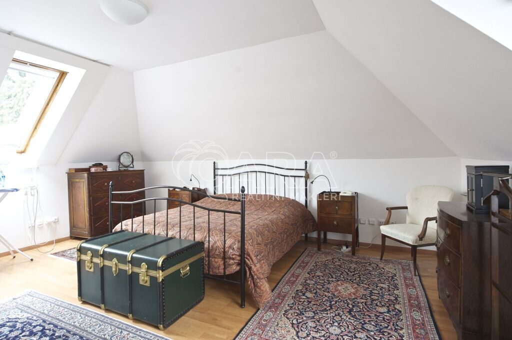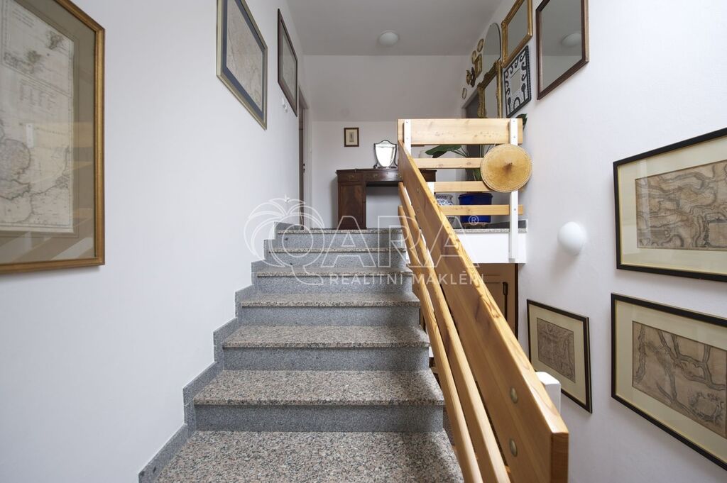 Samotný dům má zastavěnou plochu 264 m2, podlahovou plochu 417 m2, dvě garážová stání a rovinatou zahradu s velikostí 1000 m2. Vnitřní dispozice domu jsou 6+1. Největší je obývací pokoj s krbem a vysokým stropem, pro ložnice je k dispozici čtveřice koupelen, díky tomu je místo vhodné pro pohodlný život početné rodiny, kromě nájmu je nutné počítat s úhradou spotřeby energií, vody a odvozu domovního odpadu. Neváhejte se ozvat a rádi zorganizujeme prohlídku.