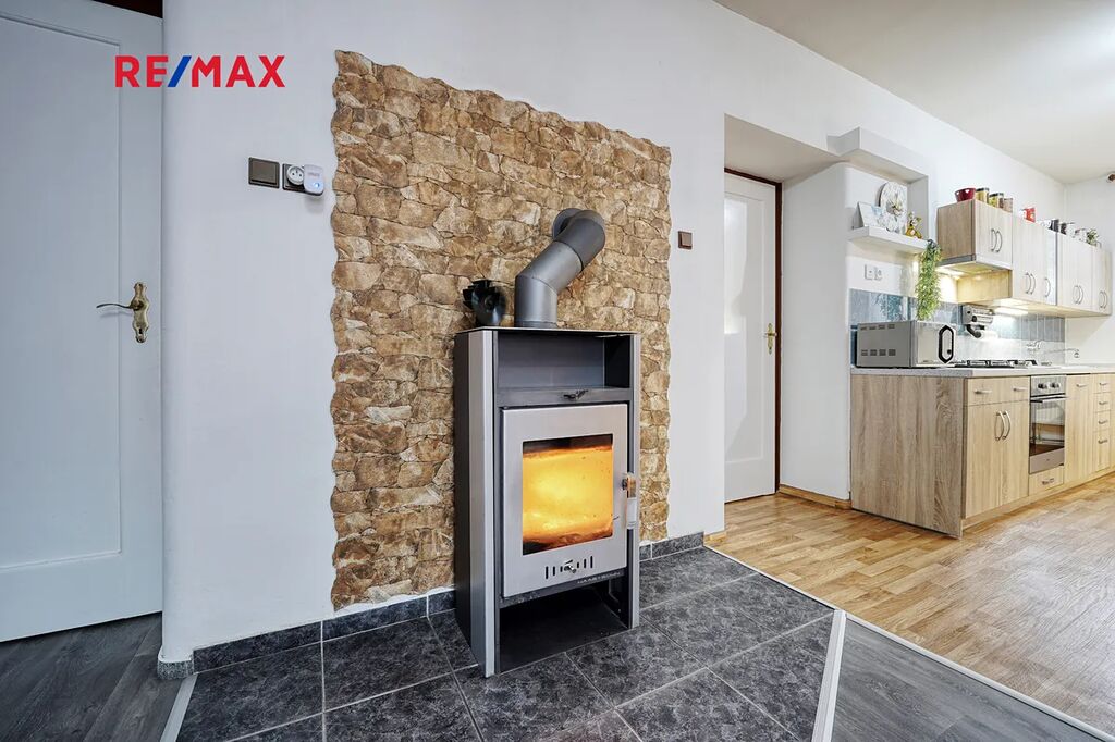 Vytápění zajišťuje plynový kotel a krbová kamna, která dodávají bytu příjemnou atmosféru a komfortní teplo i v chladných měsících. Ohřev vody je řešen kombinací plynového kotle a elektrického bojleru, což umožňuje efektivní využití energie a nižší provozní náklady.