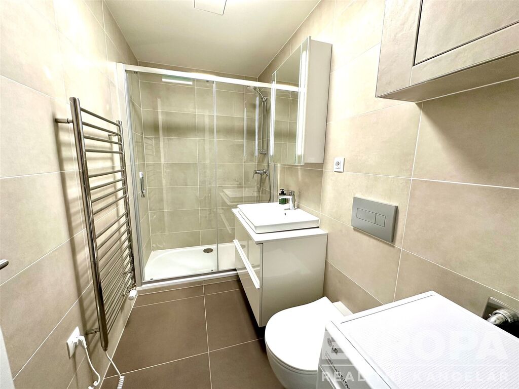 K pronájmu krásný úplně nový moderní zařízený byt v novostavbě blízko k metru 1+kk užitná plocha 67m2 s předzahrádkou 35m2 z toho terasa 15m2, garážovým stáním a prostorným sklepem.