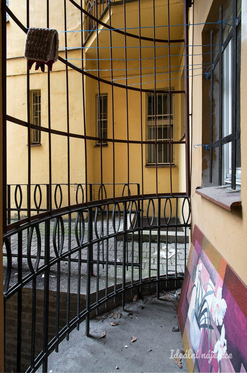 Okna kuchyně a obývacího pokoje jsou orientována do ulice. Ložnice a balkón je orientovaný do klidné zahrady ve vnitrobloku.