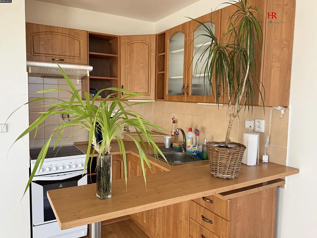 Nabízíme velmi pěkný byt 2kk 45,1 m2 včetně zasklené lodžie 2,6 m2 a komory 1,2 m2 v uzavřeném společném prostoru na patře. Byt se nachází v 7. NP panelového domu po celkové rekonstrukci. Orientace bytu na západ. Čistá plocha bytu bez lodžie, komory a sklepní kóje je 41,6 m2. Dispozice 2kk: pokoj s kk (20,5 m2), pokoj (12,2 m2), předsíň s vestavěnou skříní (5,7 m2), koupelna se sprchovým koutem a WC (3,2 m2). Plastová okna, zděné jádro bytu, nové rozvody (voda, elektro). Podlahy – plovoucí, předsíň a soc. zař. dlažba. Byt má bezpečnostní vstupní dveře. Vytápění a ohřev teplé vody dálkové, plechové radiátory s digitálními měřiči. Nová kuchyňská linka se spotřebiči. Uzavřený společný prostor pro 3 byty na patře. K bytu náleží ještě sklepní kóje 1,5 m2 v 1. NP. Udržované a čisté společné prostory domu. Dům je po komplexní rekonstrukci, zateplení, opravená střecha, zrekonstruované společné prostory, vstup na čip. Byt se nachází v 7. NP z celkových 13 v domě s dvěma novými výtahy. Parkování zdarma před domem. V místě je veškerá občanská vybavenost, aquapark, MŠ, lékař apod. Velmi dobré dopravní spojení do centra. V případě zájmu Vám zprostředkujeme právní servis a úschovu finančních prostředků.