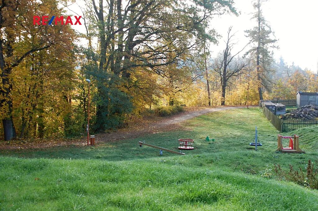 Oplocená a zatravněná zahrada obklopující dům má plochu 599 m2. Neproblematické parkování zajišťuje velké parkovací místo ze zámkové dlažby, vybudované na pozemku vedle domu a přístupné z místní komunikace přes posuvnou bránu. Pro potřebu uložení jízdních kol, sekačky, zahradního nábytku nebo dětských hraček je k dispozici plechový uzamykatelný přístřešek (viz fotodokumentace).