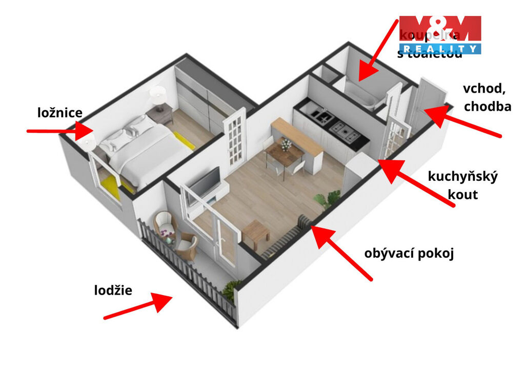 s balkonem a sklepem na chodbě o celkové výměře 35,9 m², který se nachází ve 5. NP panelového domu