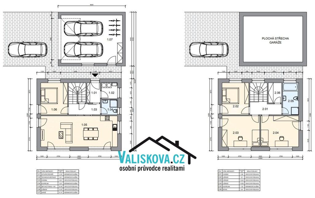 Celková užitná plocha domu činí 122,56 m2. K domu také náleží nadstandardně velká dvojgaráž 41,6 m2 a dvě parkovací místa před garáží.