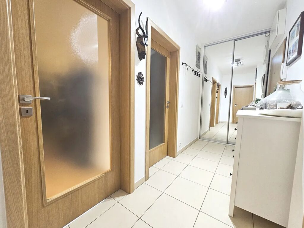 V bytě se nachází velký obývací pokoj s kuchyňským koutem (trouba, varná deska, digestoř, myčka, lednice), ložnice se šatnou (šatní skříně), koupelna s vanou, samostatné WC, předsíň s vestavěnou skříní a k bytu náleží balkón, garážové stání a sklepní kóje. Vše v ceně.