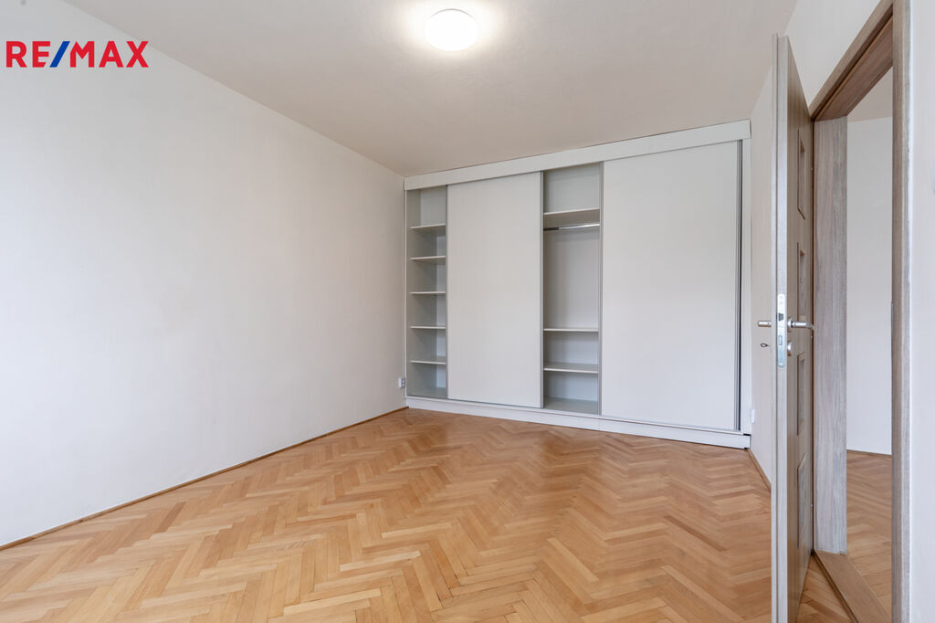 Byt zajišťuje nájemcům komfortní bydlení v příjemném interieru, velmi prostorná kuchyňská linka v praktickém tvaru do L s vestavnou varnou deskou, myčkou š. 60 cm, elektrickou troubou, digestoří, volně stojící MW troubou, zářivě bílá koupelna s podélnou vanou pro pohodlnou koupel, policemi pro ukládání toaletních potřeb s umístěním pračky, třídveřová šatní skříň s posuvnými dveřmi přes celou šířku ložnice, vestavná skříň v předsíni, na oknech žaluzie, podlahy - krásné masivní parkety v obou pokojích, v kuchyni a předsíni dlažba. Vše zánovní, čisťoučké, voňavé, ihned k nastěhování. Součástí pronájmu je sklepní kóje.