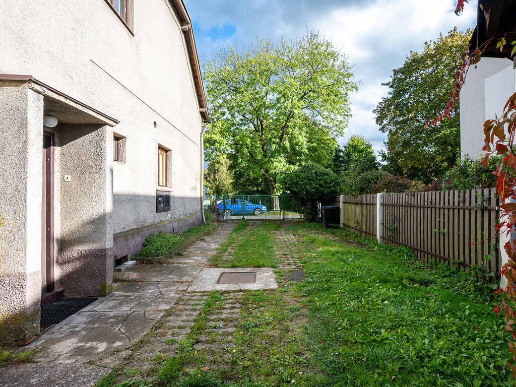 Zahrada je orientovaná do klidné zadní části domu, která svojí rozlohou zhruba 350 m² nabízí dostatečný prostor k vytvoření zázemí dle představ nového majitele.