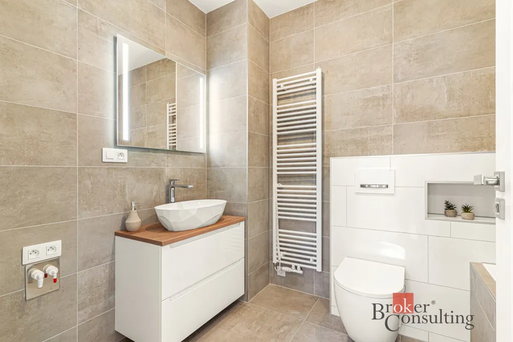 Stylová dřevostavba s prostornými místnostmi, kvalitním vybavením, nešetřilo se na materiálech, například u všech dveří domu, na značkové sanitě, u oken s trojskly použité hliníkové parapety a venkovní žaluzie, vše s důrazem na detail je připraveno k nastěhování. Kuchyni si vyberete podle vlastního vkusu, zahradu podle návrhu architekta. Díky přípravě na fotovoltaiku a kamerový systém získáte komfortní a úsporné bydlení. Sezónní věci snadno uložíte například v zateplené půdě domu.