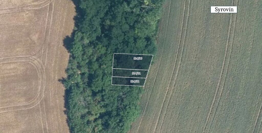 V KÚ Syrovín se jedná o prodej vlastnictví 1/3 na parcelách č. 914/30, 914/31, 914/32 a 915/24. Pozemky jsou zapsané na listu vlastnictví 802.