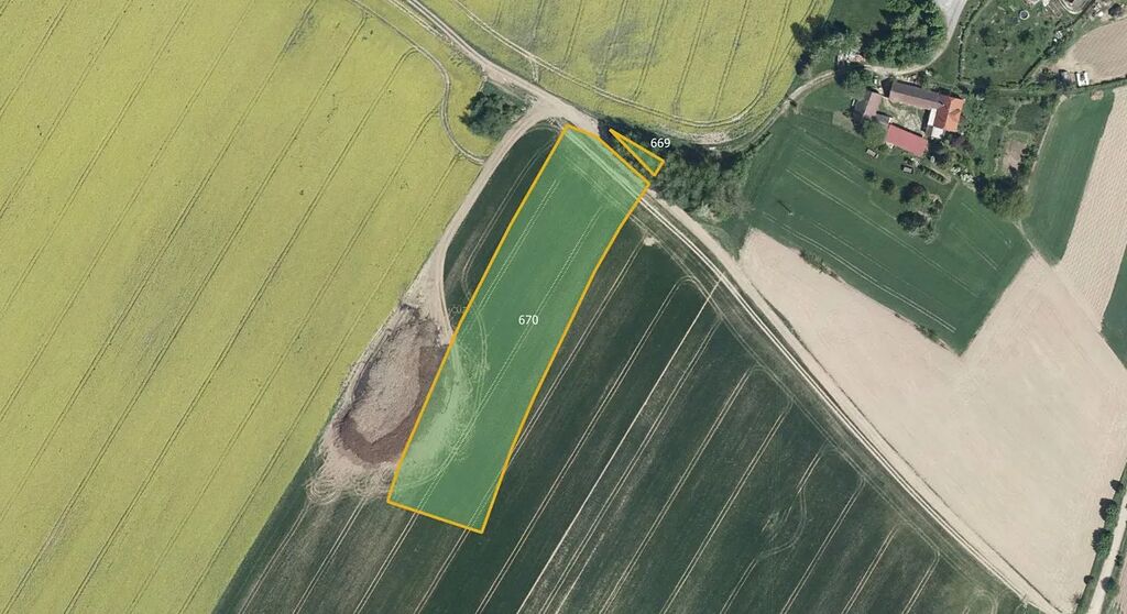 Konkrétně se jedná o parcely číslo: 606, 669, 670, 786 a 788 zapsané na LV 474 o celkové výměře 14 631 m². K prodeji na nich 7 268 m² tvoří orné půdy a 47 m² trvalého travního porost.