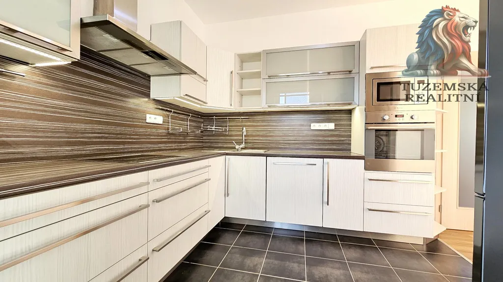 Byt samotný je prostorný a světlý s velkými okny a světlými plovoucími podlahami. Vestavěné skříně poslouží na Vaše věci. Zůstávají zde i lustry a světla.