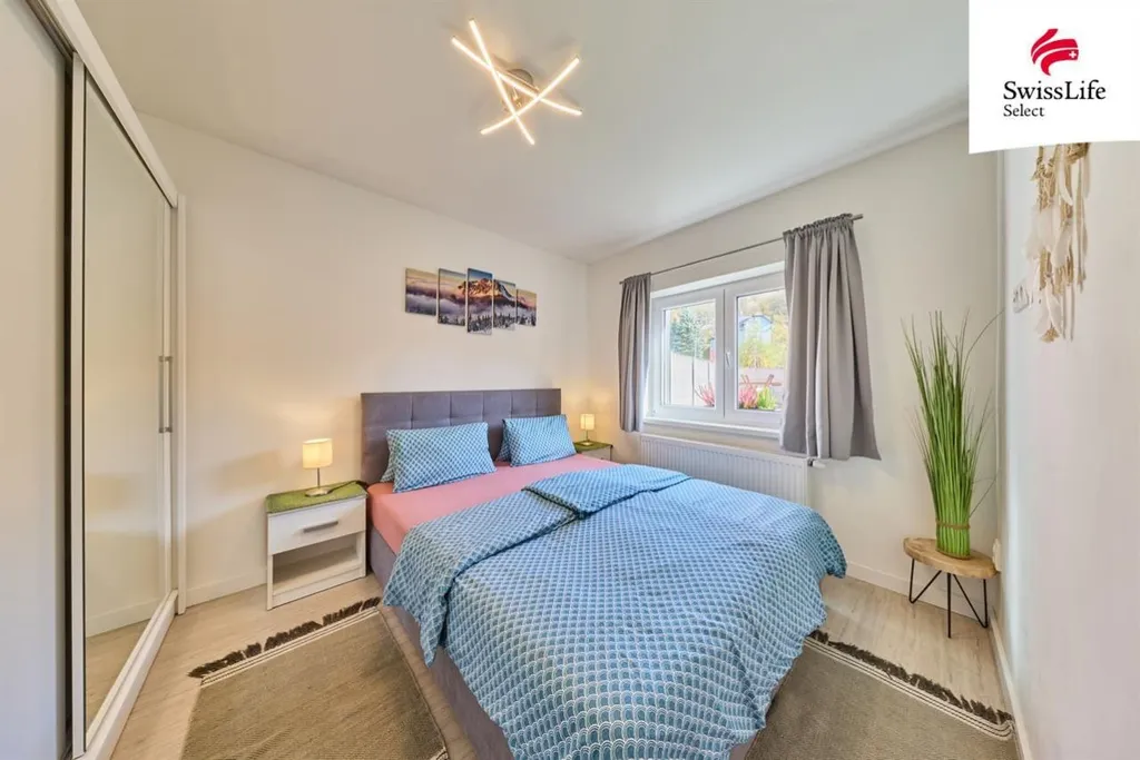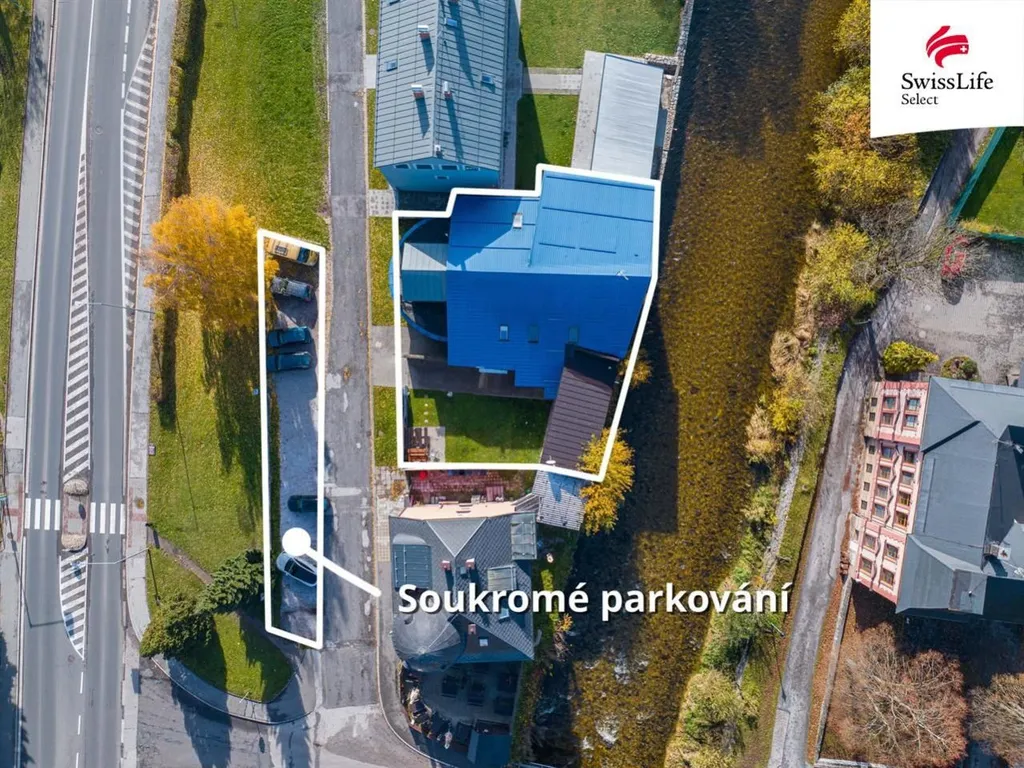 Na druhém pozemku se nachází samostatný apartmánový dům 1+1 o výměře 30 m. Celková plocha domu je přibližně 703 m a pozemky o celkové výměře 800 m.