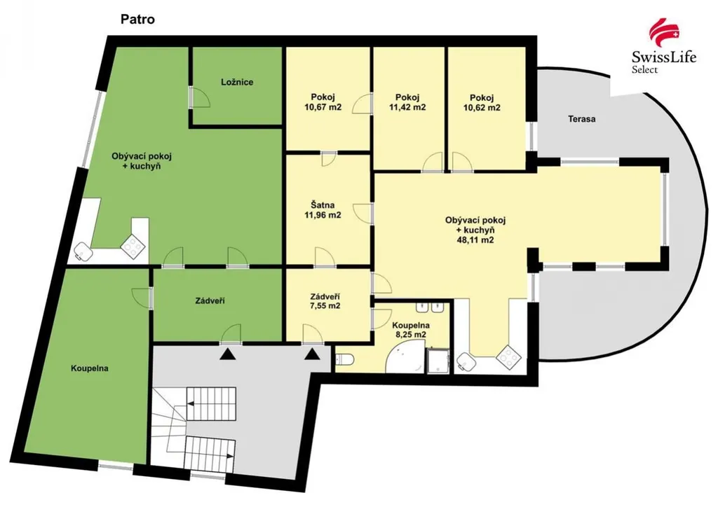 nebytový prostor (276 m) lze přestavět na další apartmány, byty nebo využít pro podnikání například jako ordinaci, soukromou kliniku s apartmány, snídaňové bistro k apartmánům ad.