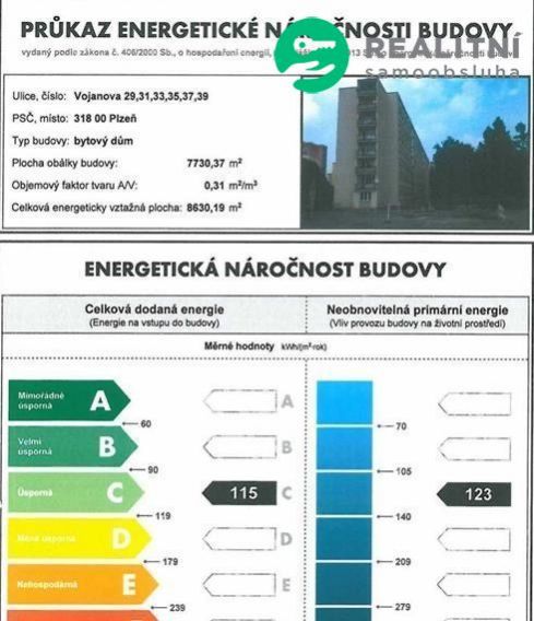 Vytápění i ohřev vody jsou centrální, což zajišťuje pohodlí a nízké provozní náklady.