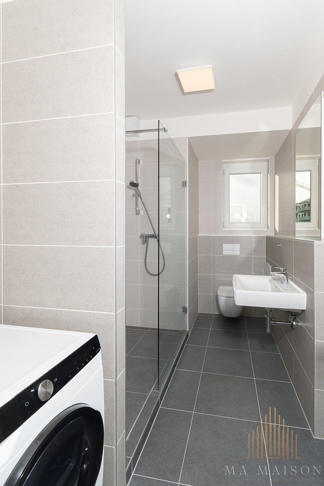Byt je velmi dobře dispozičně řešený – sestává ze vstupní chodby s vestavěnou skříní, prostorného obývacího pokoje s moderní kuchyňskou linkou (lednice s mrazákem, myčka, trouba, varná deska, digestoř) a vstupem na balkon, dále z ložnice se šatní skříní a koupelny se sprchovým koutem a pračkou. Byt je vybaven chytrým systémem ovládání osvětlení pomocí mobilní aplikace a venkovními žaluziemi, které zajišťují maximální komfort.