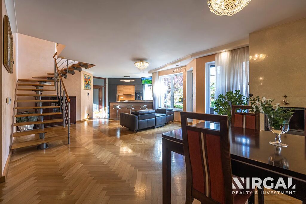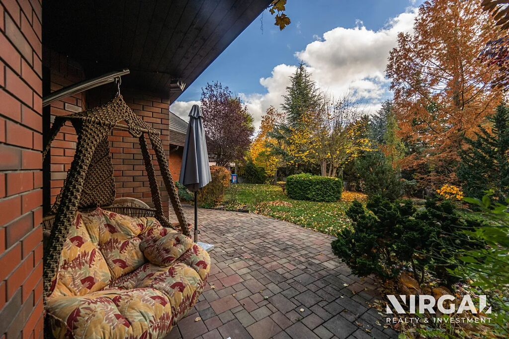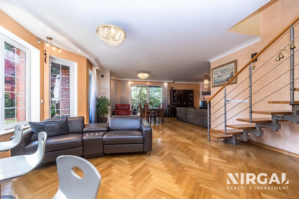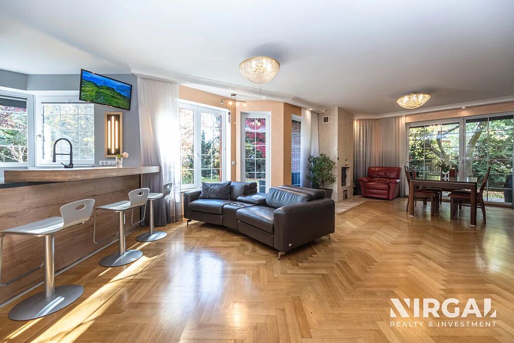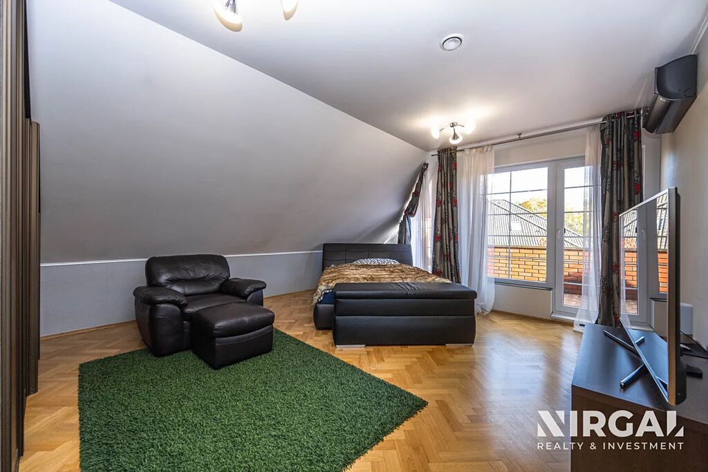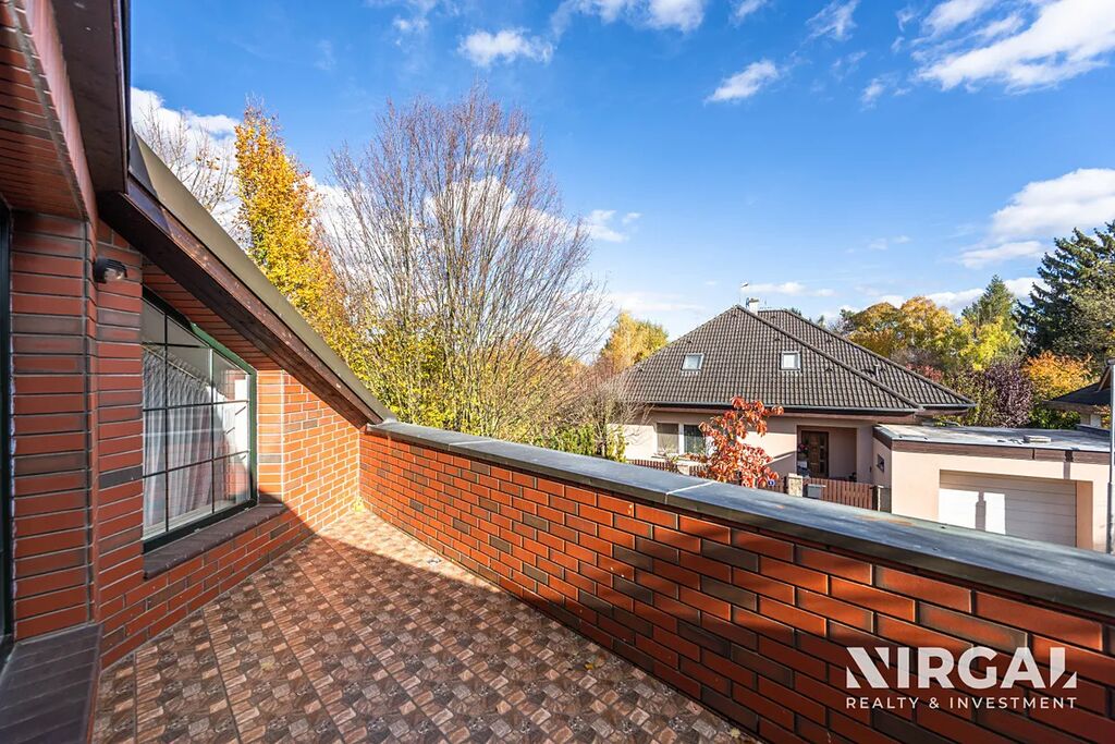 Vila s dispozicí 6+kk a užitnou plochou 383 m² stojí na rozlehlém pozemku o velikosti 1 102 m². Architektura domu působí vzdušně a harmonicky – prostorný obývací pokoj s francouzskými okny doslova propojuje interiér se zahradou a vytváří pocit plynulého přechodu mezi domem a přírodou. Dominantou je elegantní krb, který přináší teplo i atmosféru.