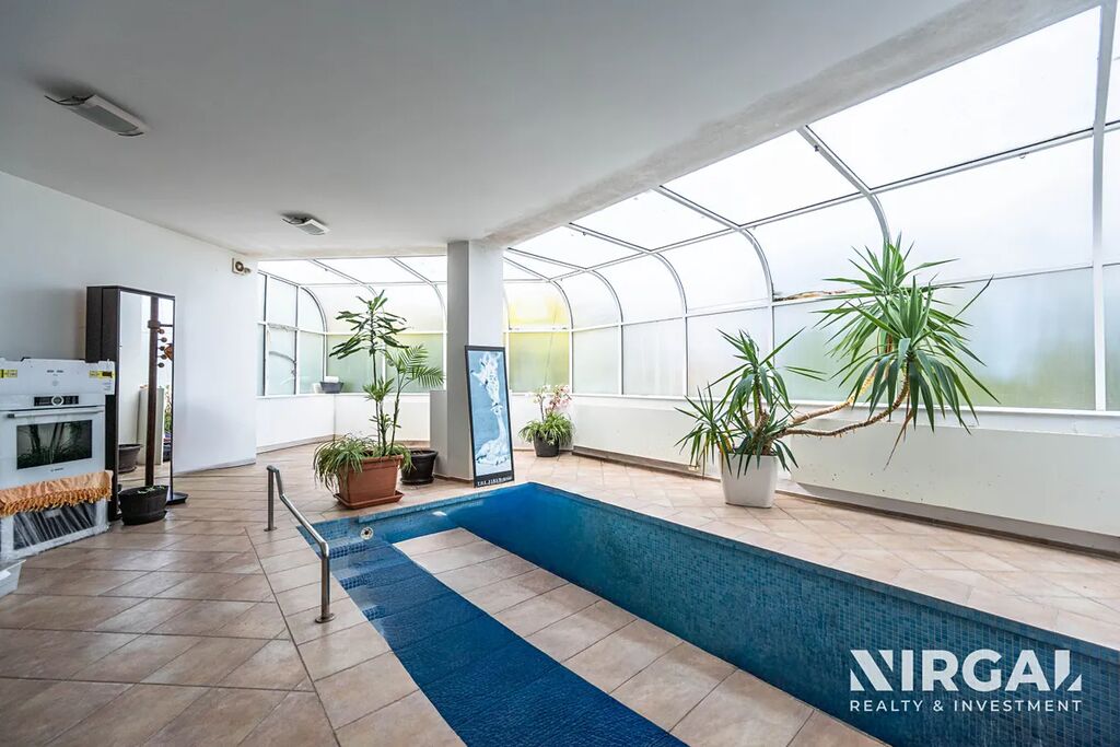 Součástí domu je také krytý bazén, ideální pro celoroční relaxaci a aktivní odpočinek v soukromí vašeho domova. Bazén navazuje na obytnou část a nabízí přímý vstup na terasu i do zahrady – místo, kde si užijete klid i komfort bez ohledu na počasí.