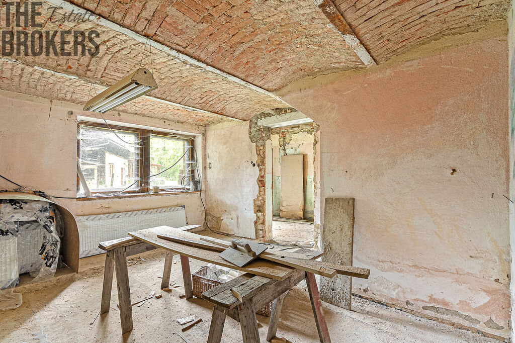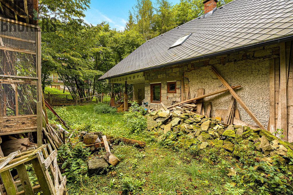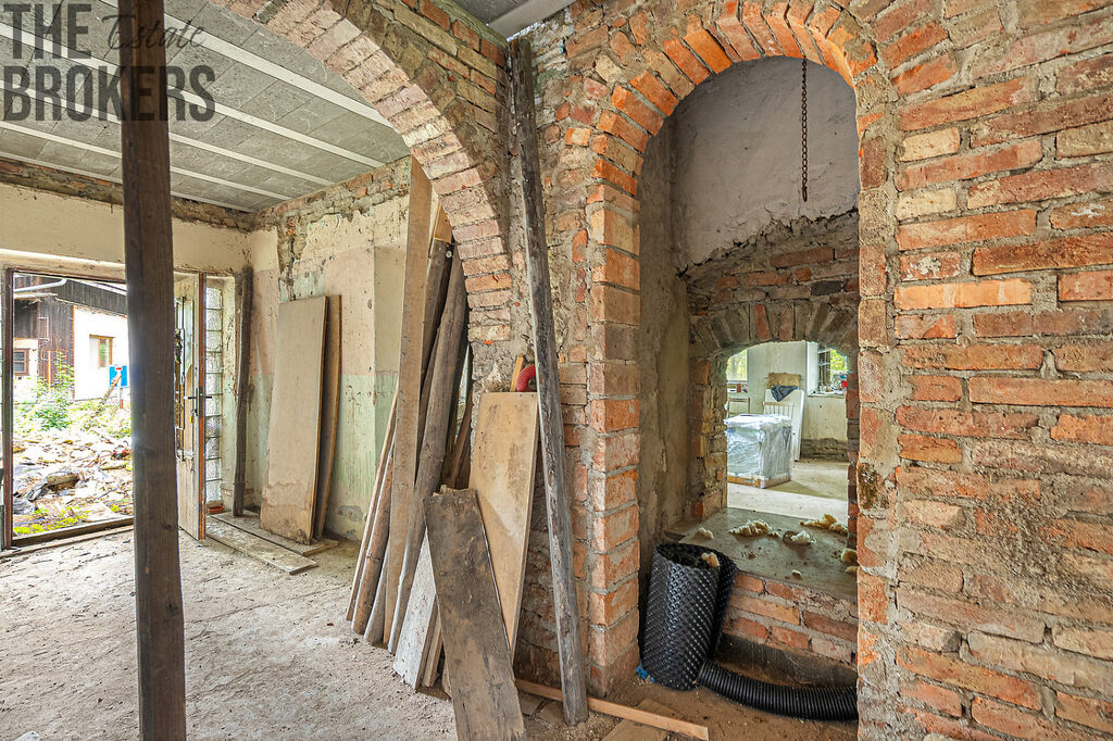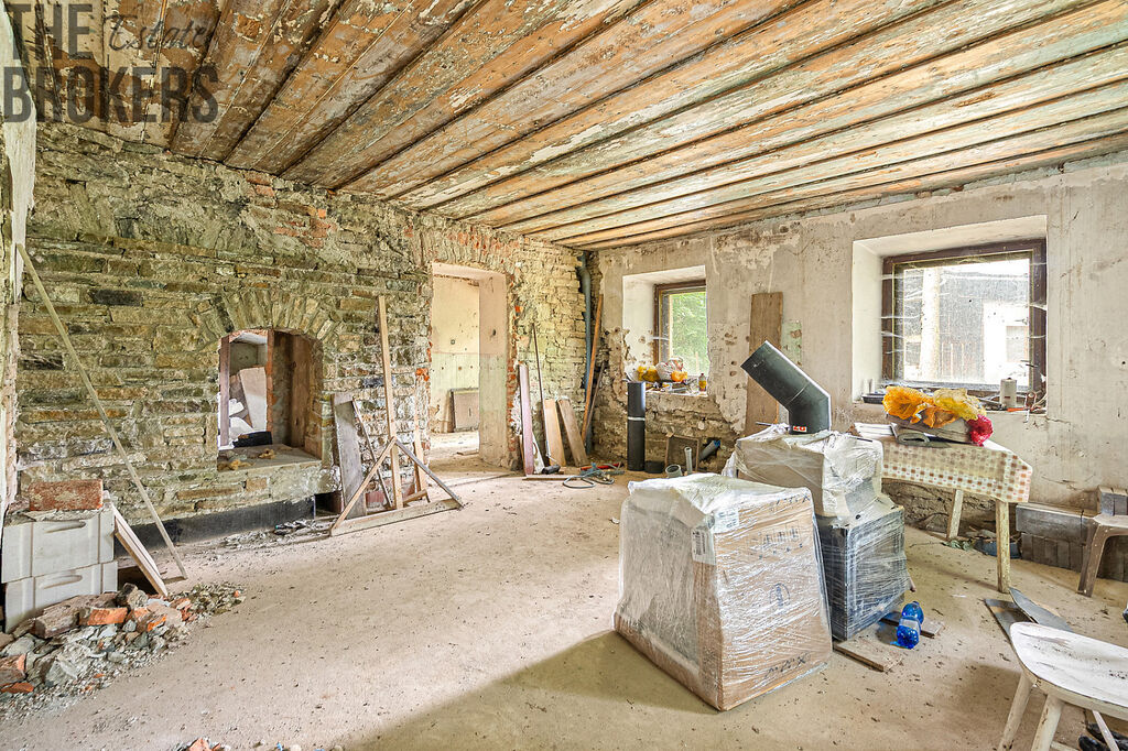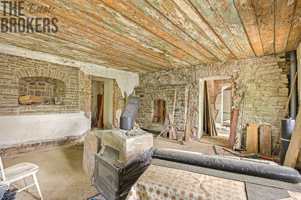 Dům je určen ke kompletní rekonstrukci, přičemž část práce už byla provedena – má novou střechu a krovy, jsou připravené radiátory, okna i oboustranná krbová vložka. Přízemí je připraveno na obnovu dispozic podle vašich potřeb, podkroví nabízí možnost vybudování další obytné části. Část materiálu a vybavení pro rekonstrukci je již k dispozici a uskladněna v nemovitosti.