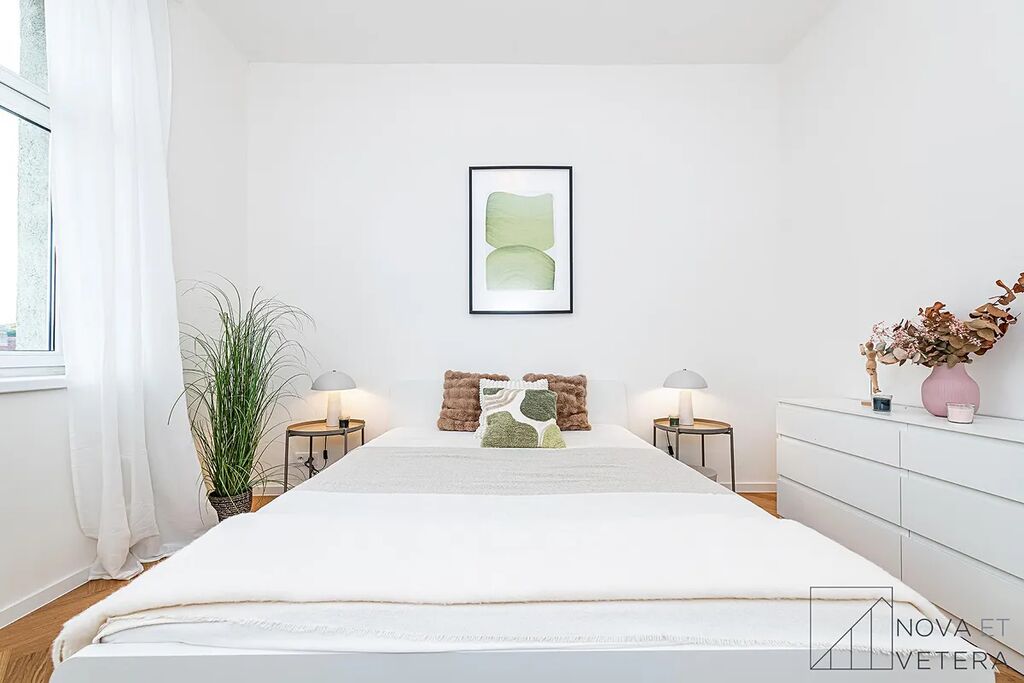 Byt prošel kompletní rekonstrukcí, která zahrnovala nové rozvody, podlahy, obklady i koupelnu se sprchovým koutem a sanitou Grohe. Součástí je nová kuchyňská linka se spotřebiči značky Gorenje (lednice s mrazákem, trouba, varná deska, myčka, digestoř). Dispozici tvoří obývací pokoj s kuchyňským koutem, samostatná ložnice a koupelna s toaletou. K dispozici je také technická místnost s přípojkou na pračku.