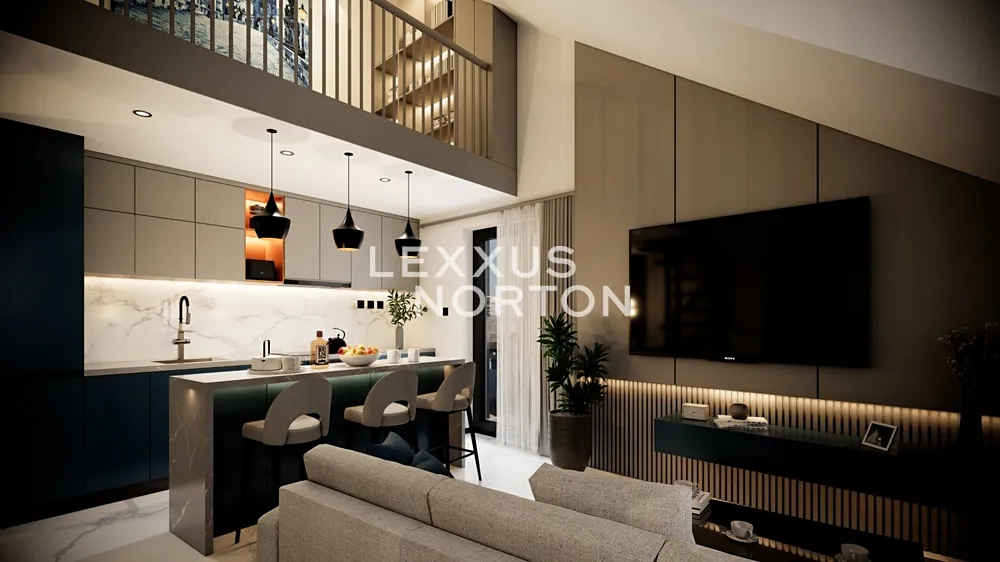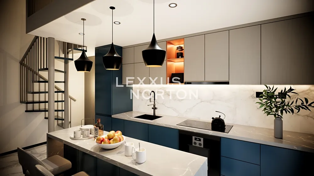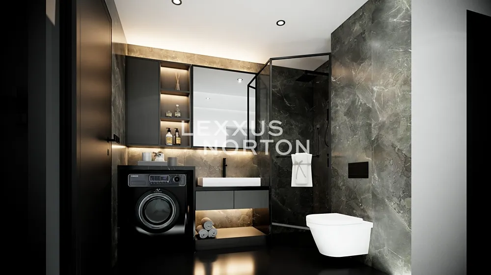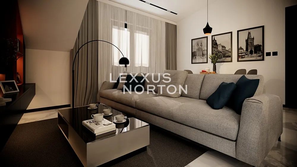 Hlavní obytný prostor nabízí dostatek místa pro kuchyňský kout i obývací část a přímý vstup na balkon. Ložnice disponuje prostorem pro šatní skříně a úložné prvky. Koupelna s vanou i samostatné WC jsou vyřešeny v moderním designu se stěrkou v imitaci kamene a černými bateriemi Mexen Cube.