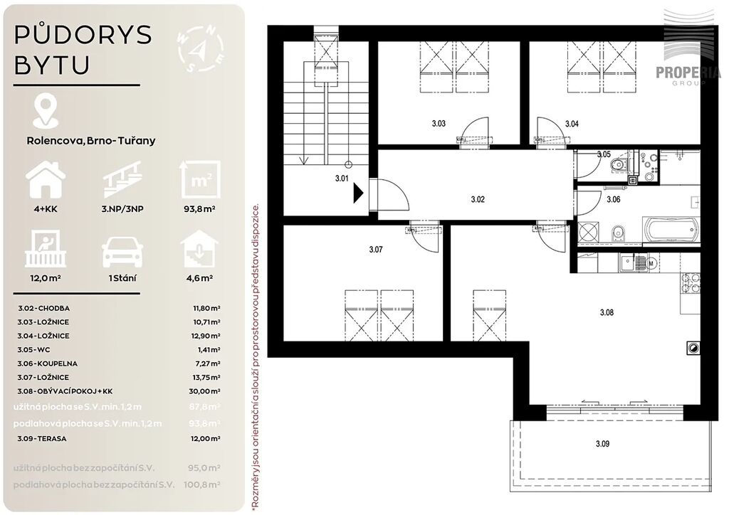 Prodej bytu 4+kk, Brno, Rolencova, 88 m2