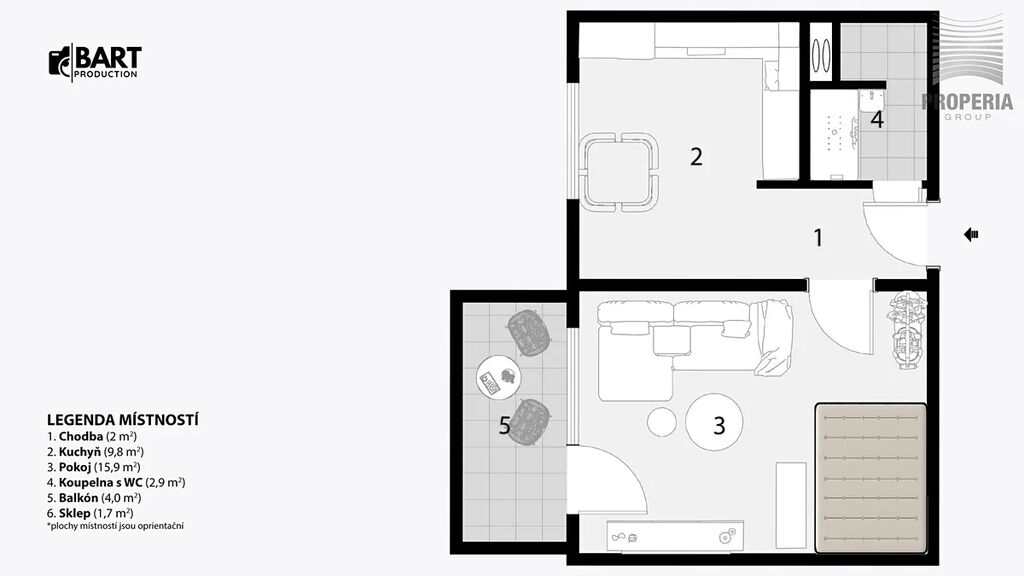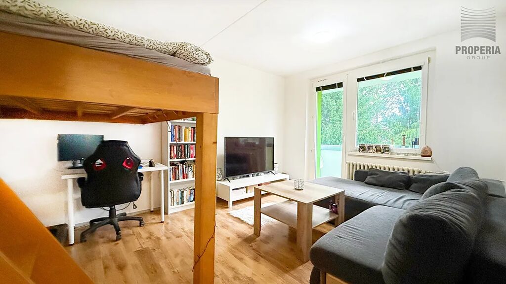 Byt je v původním stavu a je vhodný k rekonstrukci. Dispozice nabízí samostatnou kuchyň, prostorný pokoj se vstupem na balkon, koupelnu s toaletou a předsíň. K bytu náleží také sklepní kóje.