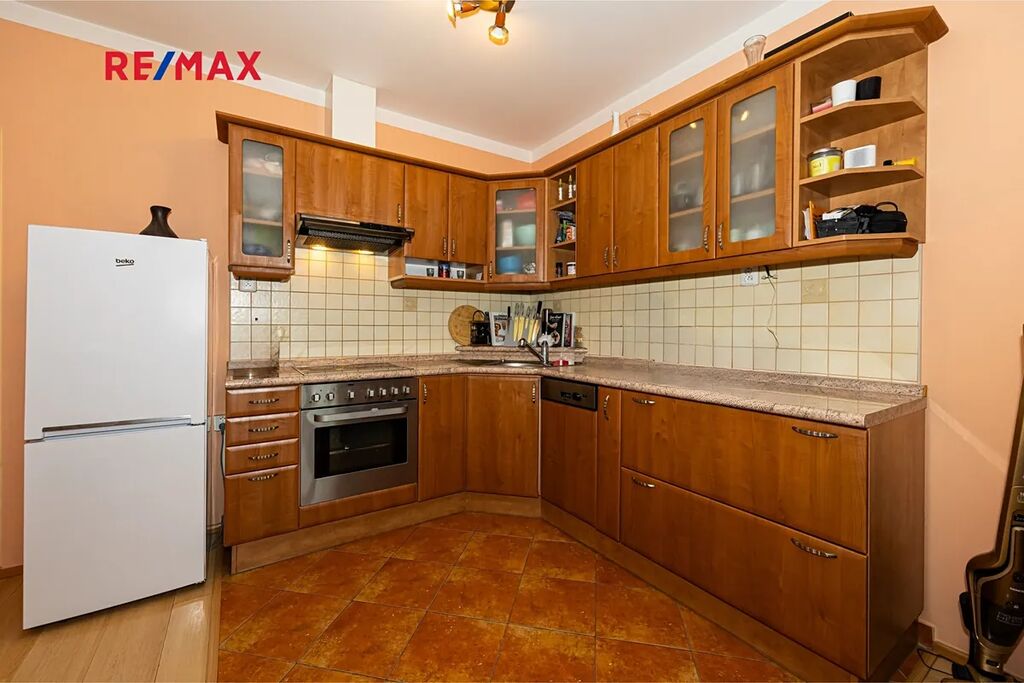 V koupelně se nachází rohová vana, praktické úložné police u stropu, které najdete i v předsíni. Kuchyně je vybavena vestavěnou troubou, varnou deskou, digestoří a myčkou. Na podlahách jsou plovoucí podlahy a dlažba.