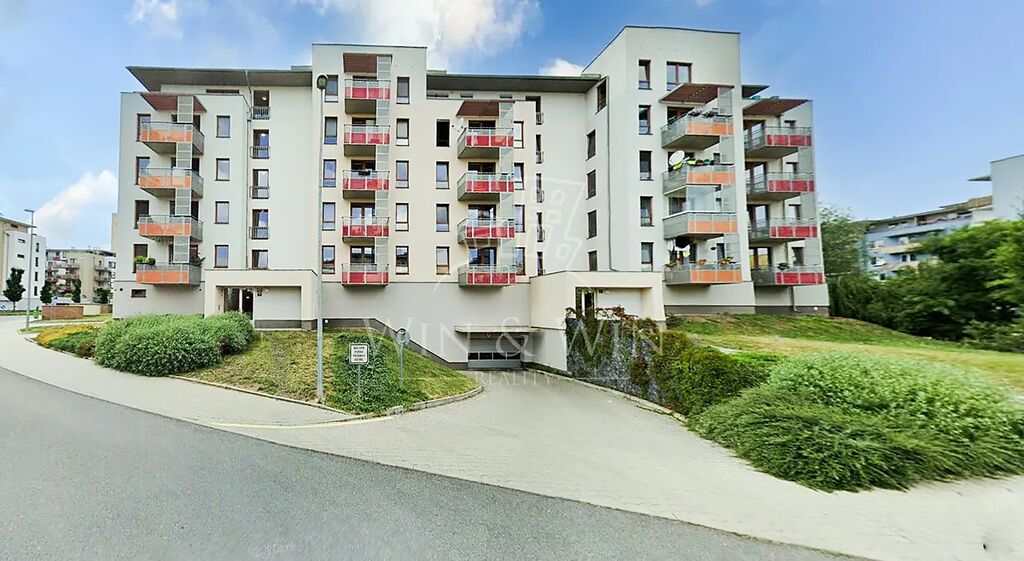 Byt se nachází ve 4. nadzemním podlaží a nabízí komfortní a prostorný interiér. Vstupní hala o velikosti 4,53 vede do obývacího pokoje 24,57 m2 s kuchyňským koutem, který je plně vybaven kuchyňskou linkou . Ložnice 14,17 m2 disponuje praktickou šatnou. Koupelna je vybavena vanou, topným tělesem a prostorem pro pračku. Z obývacího pokoje je vstup na terasu, která nabízí krásné výhledy do okolí. K bytu náleží sklep a jedno garážové stání. Cena je včetně parkovacího stání, sklepu a po výrazné slevě na rekonstrukci (zničené dveře a futra po předešlým nájemníkovi) nemovitost je tedy vhodná pro někoho kdo si chce byt pro sebe přizpůsobit.