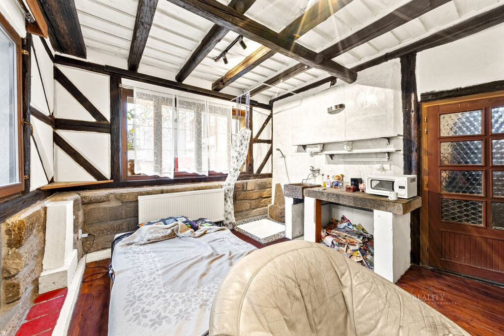 Součástí je dvoupatrová přístavba (40 m²) – ideální pro ateliér, kancelář či menší byt.