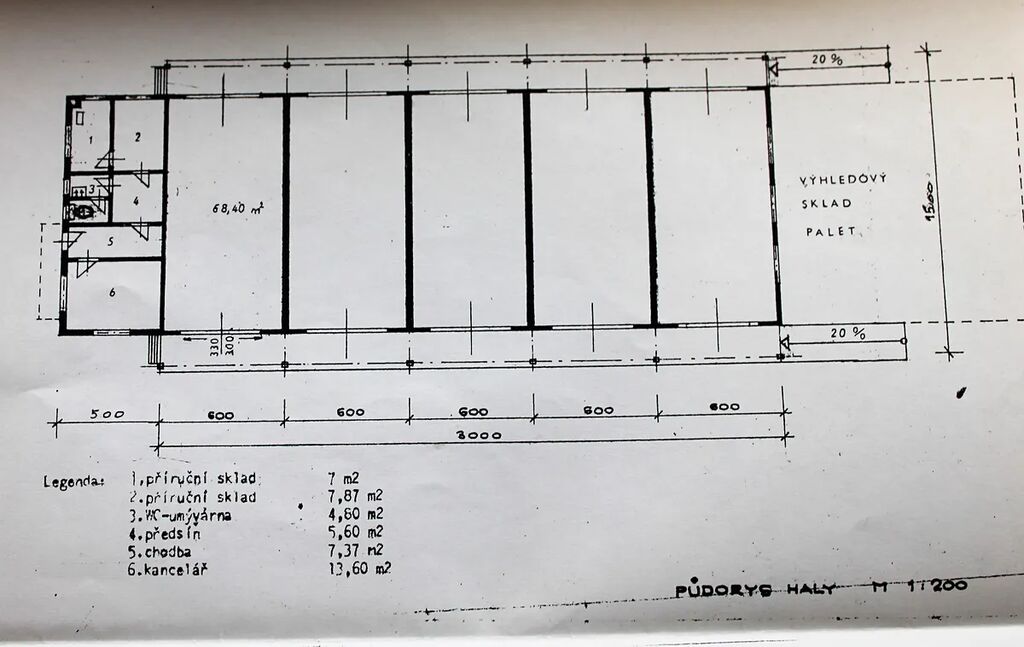 Celková zastavěná plocha objektu je 589 m2 a pozemek má výměru 3 529 m2. Celý areál je po rozsáhlé rekonstrukci vč. venkovních asfaltových ploch. Objekt je rozdělen na několik samostatných prostor s přímými vjezdy, vlastními vraty a nakládací rampou z druhé strany. V přední části se nachází administrativní zázemí vč. WC a sprchy. Možnost propojení všech prostor dohromady a vytvoření jednoho uceleného prostoru. Ideální místo pro skladování, výrobu, obchod či dílnu. V areálu jsou nově vytvořené asfaltové plochy, které lze využít pro parkování kamionů, stavební techniky či jako prodejní plochy. Celý areál je kompletně oplocen. Vytápění objektu je zajištěno systémem ústředního vytápění s radiátory.