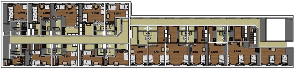 Jedná se o kompletně nově postavenou ubytovnu s celkem 15 pokoji pro celkem až