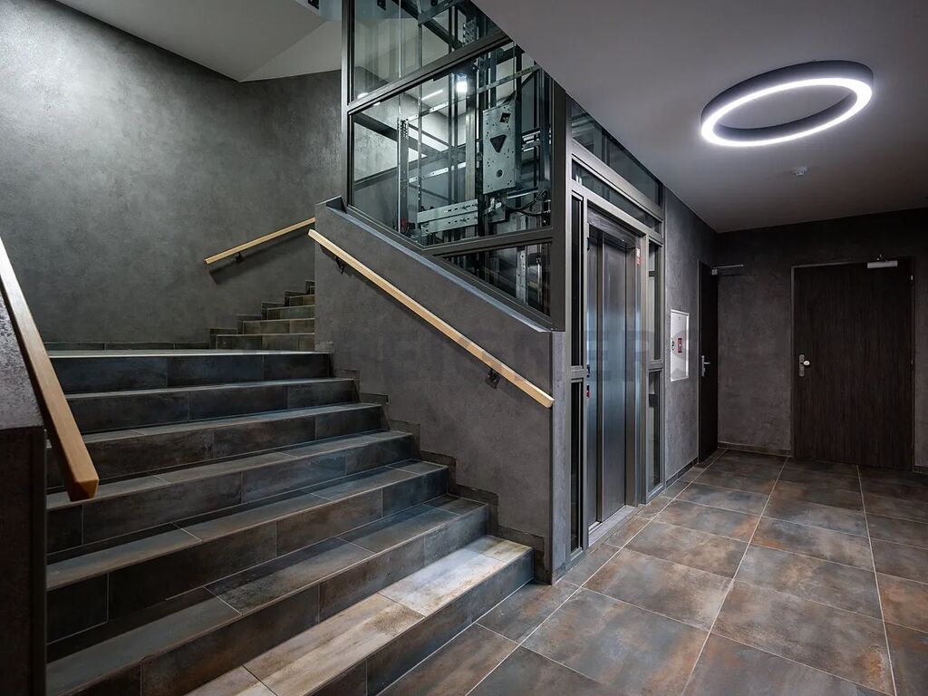 Byt se nachází ve 4. patře a je pohodlně přístupný výtahem. Nájemníci mají k dispozici sklep a kolárnu v přízemí domu a parkovací stání, částečně kryté i nekryté.