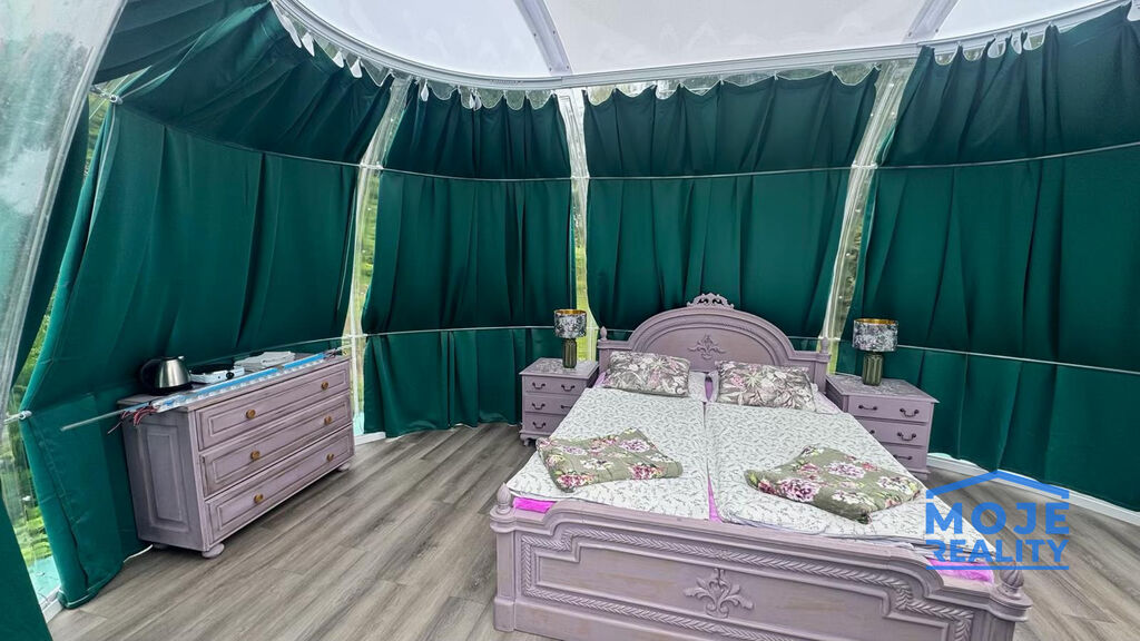 nově vybudovaná glampingová kopule pro hosty nebo relax