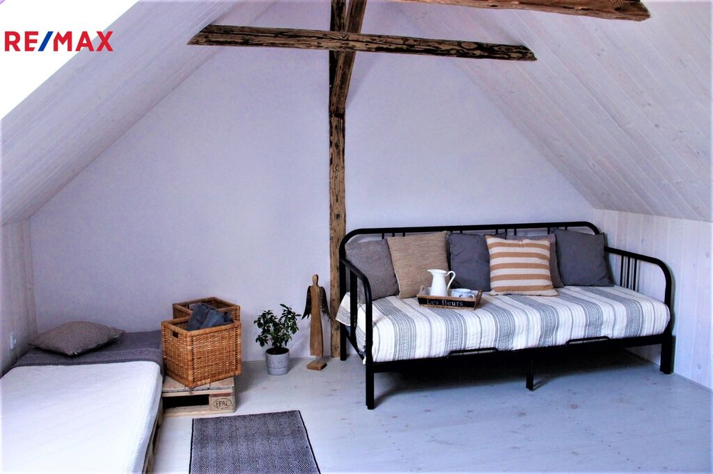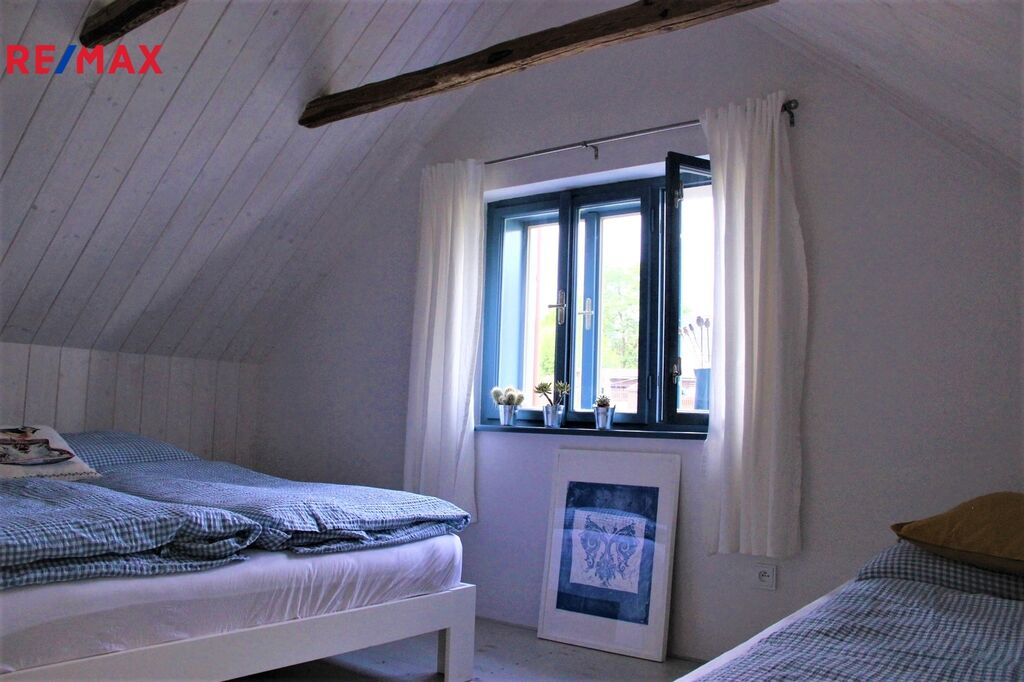 • nové zateplení střechy (pěnou), původní pálené tašky ponechány – ve výborném stavu