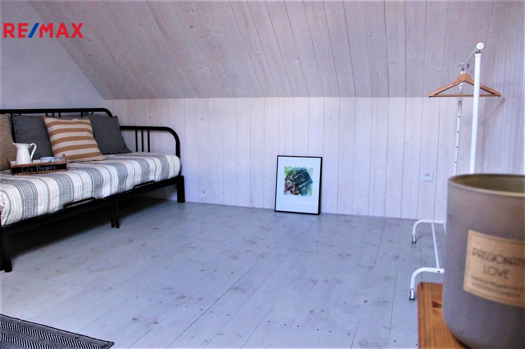 V přízemí domu se nachází otevřený obytný prostor, který spojuje styl a útulnost. Dominantou interiéru jsou krbová kamna, u nichž si můžete vychutnat teplo i atmosféru praskajícího ohně. Prostor dále doplňuje jídelní stůl pro šest osob, pohodlná rozkládací sedačka a plně vybavená kuchyň. Součástí přízemí je také koupelna se sprchovým koutem a toaletou. Točitými schody se vystupuje do prvního patra, kde jsou situovány dvě neprůchozí ložnice, každá s kapacitou až tří osob. Celý dům je příjemně vyhříván podlahovým topením a krbovými kamny, což zajišťuje plný komfort i v chladnějších měsících. Za domem se rozprostírá malá zahrádka s posezením a možností grilování, ideální pro odpočinek a letní večery.