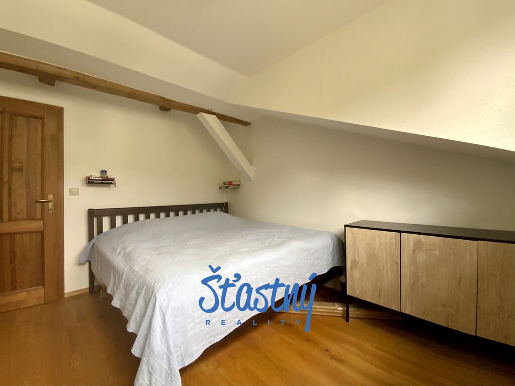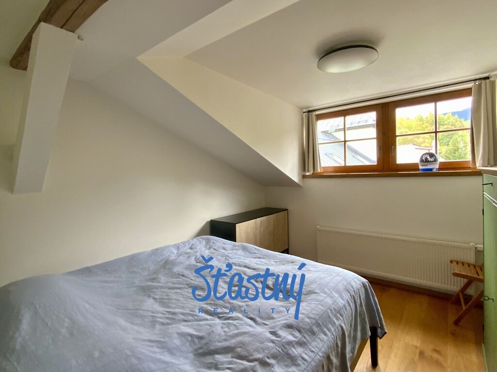 Horní patro se sníženým stropem slouží jako útulná spací zóna s vysokou kapacitou lůžek, díky čemuž je byt ideální nejen pro vlastní rekreaci, ale i jako investiční příležitost s možností výnosného krátkodobého pronájmu.