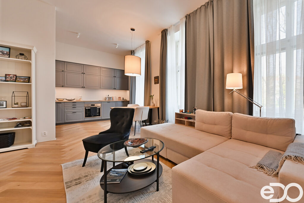 Pronájem luxusní prostorné bytové jednotky 2+kk na ulici Hilleho – Brno – Černá Pole. Jedná se o plně vybavený secesní byt po nedávné nadstandardní kompletní rekonstrukci. K dispozici je veškeré zařízení domácnosti včetně nábytku. Jednotka se nachází v prvním patře cihlového bytového domu s výtahem. Secesní dům je kompletně revitalizován se zachovalými původními prvky. Ulice Hilleho se nachází v jedné z nejžádanějších lokalit širšího centra města Brna, je spojnicí mezi Třídou Kpt. Jaroše a Náměstím 28. října, doslova pár kroků od městského parku Lužánky. Asi není nutno zdůrazňovat vynikající dopravní dostupnost a pěší dosah centra města a klidnou lokalitu plnou okolní zeleně. Výměra bytu 61 m2 + sklep 5 m2.