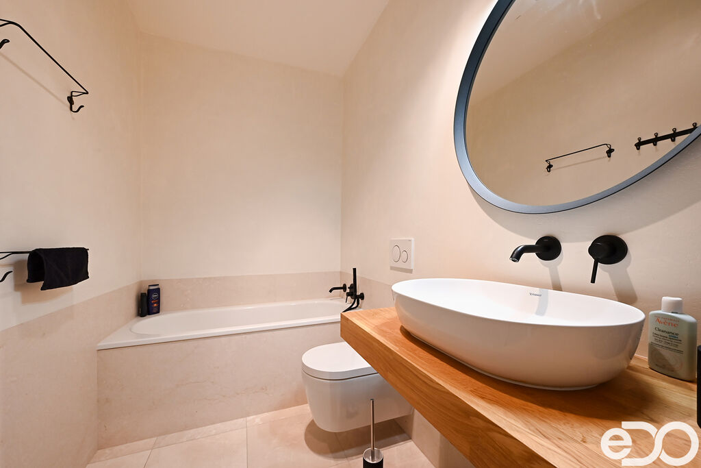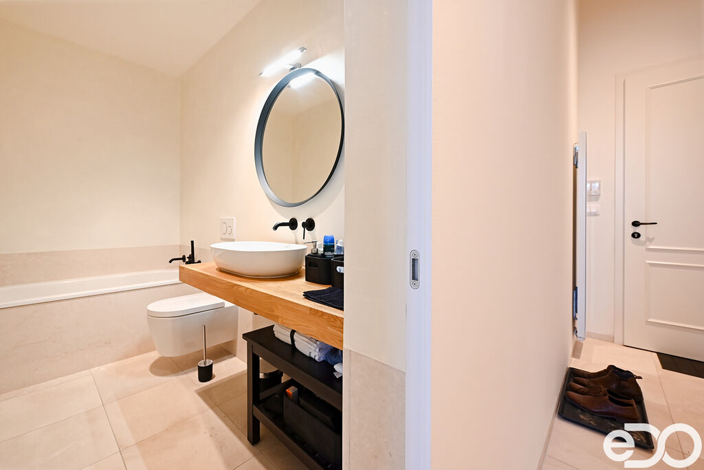 - Vytápění centrální, radiátory, v koupelně podlahové topení, ohřev TUV vlastním elektrickým bojlerem.