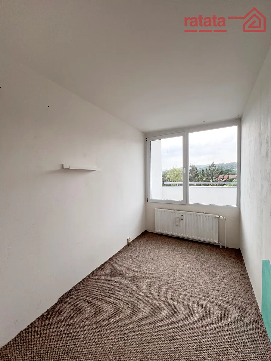 Pronájem mezonetového bytu 3+1 s balkónem , který se nachází ve 2. patře zatepleného panelového domu v ulici Kundratická 4596, Chomutov.