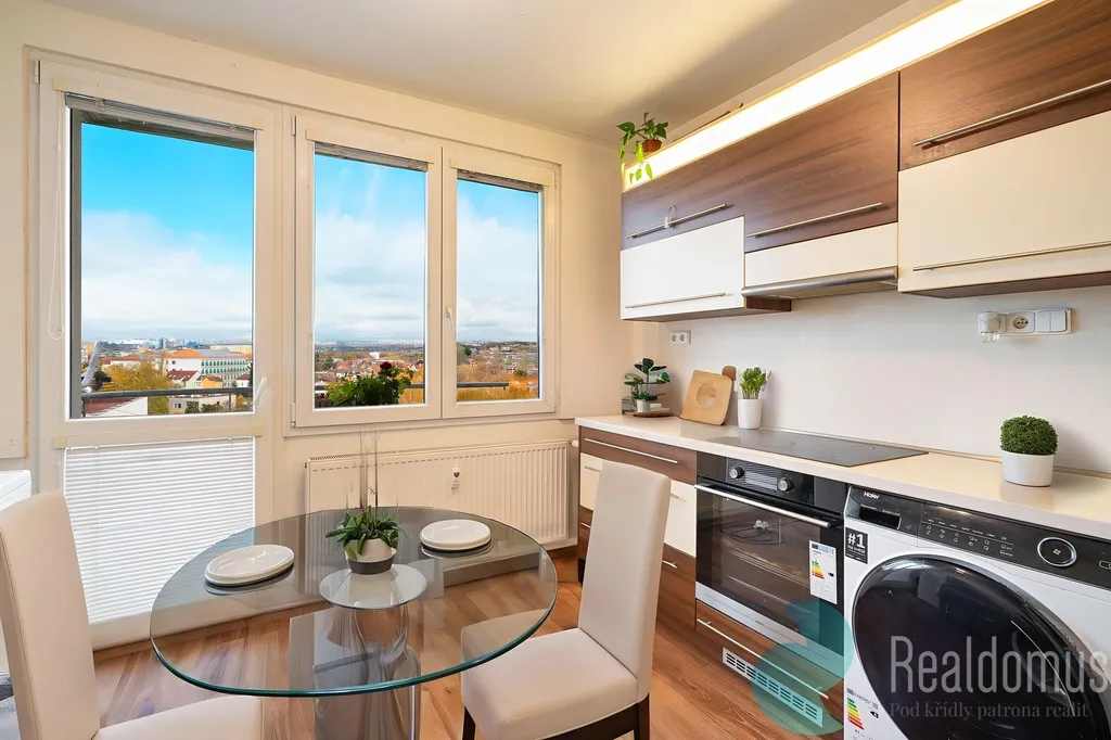 Po vstupu do bytu je menší chodba, odkud je vstup do kuchyně a samostatného pokoje. Prostorný a světlý pokoj s velkou vestavěnou skříní. Z kuchyně je přístup na balkon s pěkným výhledem. Velmi vkusná kuchyňská linka. V koupelně vana, toaleta samostatná.