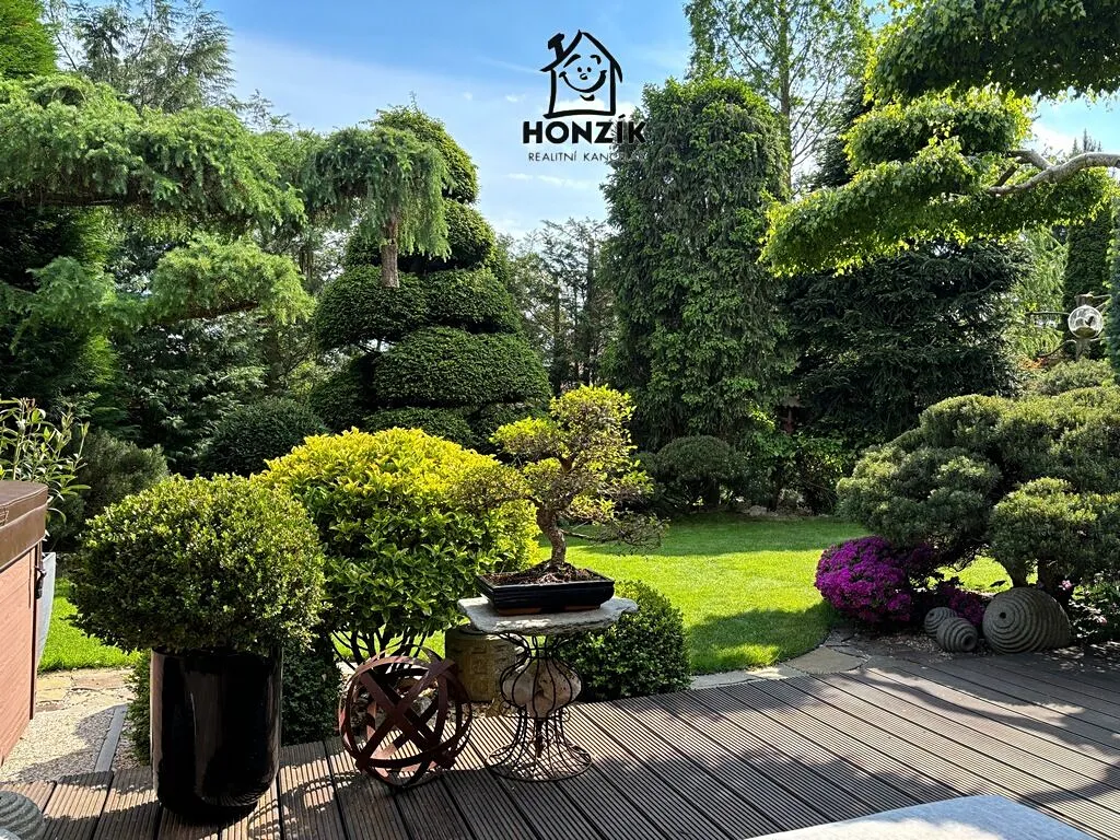 Nabízíme na prodej krásný, samostatně stojící rodinný dům z roku 2001 o dispozici 4+1 s jídelnou, zimní zahradou, terasou a překrásnou vzrostlou zahradou v Zahořanech u Mníšku pod Brdy. Dům je přízemní s čistou obytnou plochou 121 m2 (bez teras a zimní zahrady), je postaven na pozemku o výměře 1140 m2, v klidné lokalitě v zástavbě rodinných domů a vil. Je velice dobře dispozičně řešen, obývák s krbem je propojen s prostornou kuchyní a jídelnou, pokoje jsou vesměs neprůchozí, má dostatečně velkou koupelnu i komoru a přes terasu s markýzou, posezením a novou výřivkou, je prakticky propojen se zahradou. Kuchyň je vybavena veškerými spotřebiči. Dům je napojen na veškeré inženýrské sítě - elektro, vodovod a kanalizace, kromě plynu. Vytápění a ohřev vody zajišťuje tepelné čerpadlo z roku 2020. Koupelna a toaleta má podlahové teplovodní vytápění a je po rekonstrukci v 2020. Parkování pro dvě auta je řešeno zastřešeným parkovacím stáním. Zahrada je nádherná, udržovaná a již se vzrostlými stromy, jinými keři a rostlinami a nachází se na ní také zahradní jezírko. Dům splňuje předpoklady moderního, pohodlného a energeticky nenáročného bydlení. Velmi klidná a žádaná lokalita v čistém prostředí s dobrou dostupností Prahy (Smíchovské nádraží a metro cca 30 min.) s dostupností všech potřebných služeb v nedalekém Mníšku pod Brdy nebo v Praze.
