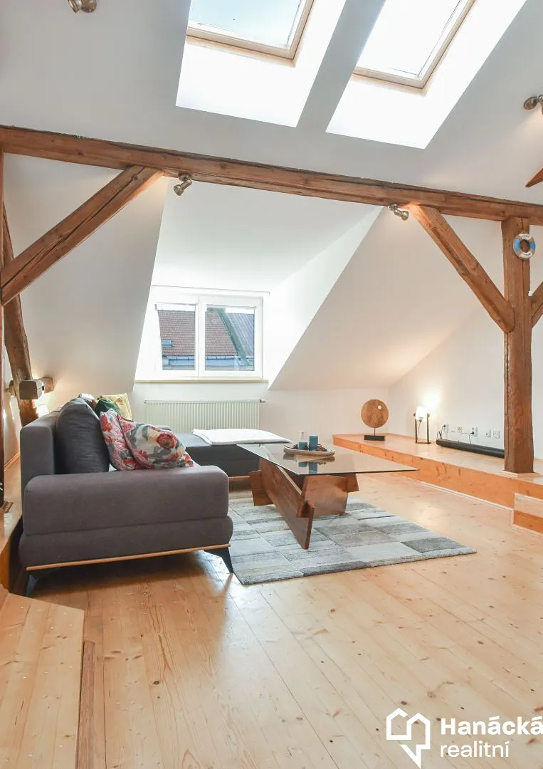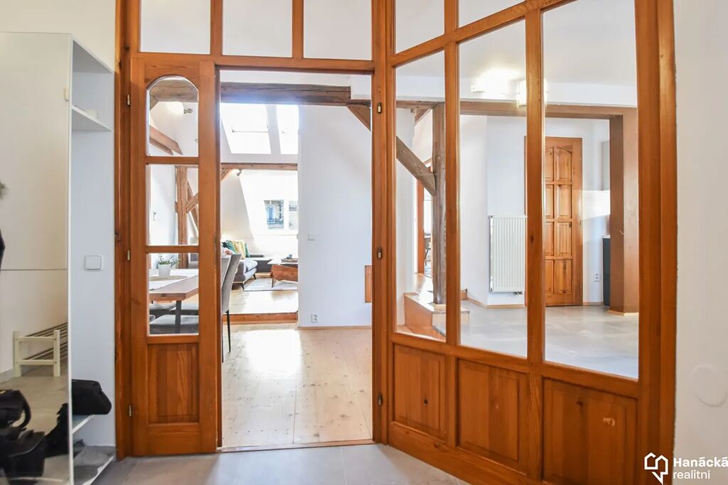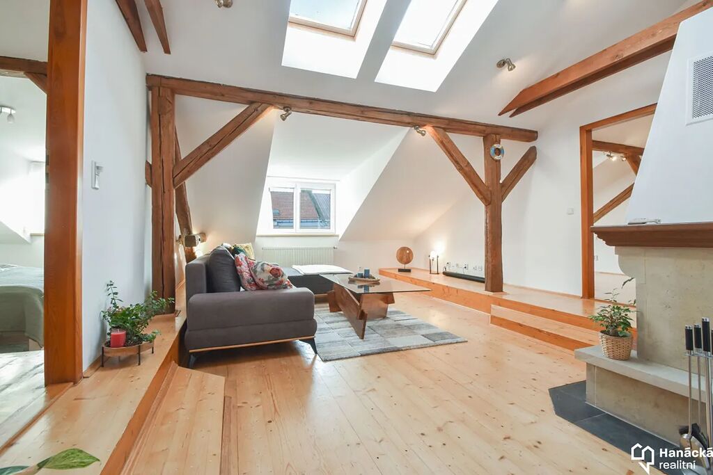 Nabízíme k pronájmu výjimečný podkrovní byt o dispozici 3+kk a celkové podlahové ploše 114 m², který se nachází v 5. NP bytového domu bez výtahu na ulici Komenského v Olomouci.