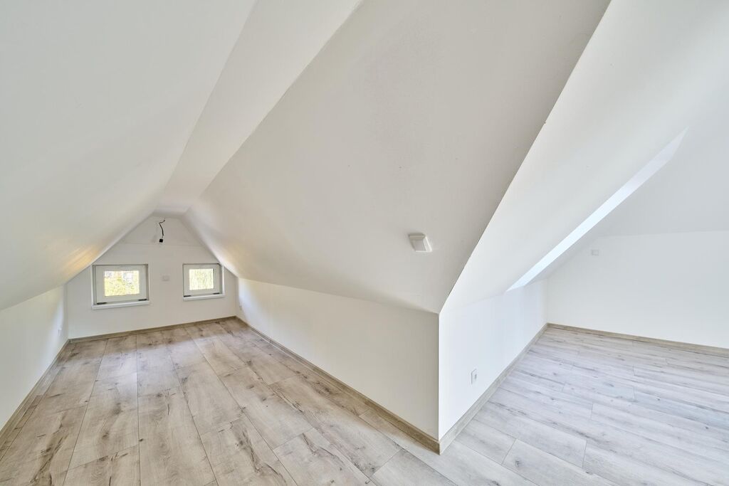 Dispozice bytu: předsíň, kuchyně, obývací pokoj, koupelna s vanou i sprchovým koutem a WC, schodiště do patra, koupelna se sprchovým koutem a WC, 2x pokoj.