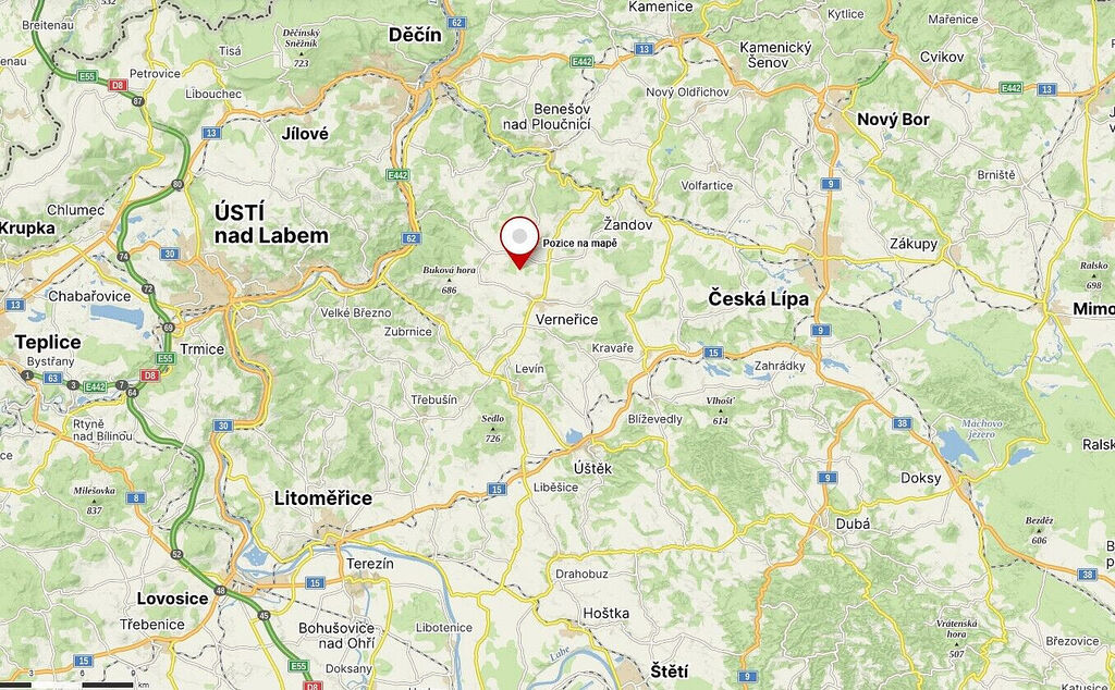 Nedaleko města Verneřice nabízíme k prodeji pozemek o výměře 22 839 m². Verneřice se nachází přibližně 14 km jihovýchodně od Děčína v Ústeckém kraji. V katastru nemovitostí je pozemek veden jako trvalý travní porost. Město leží v severních Čechách, v údolí Bobřího potoka na severovýchodě Českého středohoří. Díky své poloze nabízí možnost návštěvy zajímavých míst v okolí, například rozhledny Načkovice nebo Bobří soutěsky. Oblastí procházejí turistické i cyklistické trasy. Název katastrálního území jsou Verneřice. V případě zájmu nás neváhejte kontaktovat.