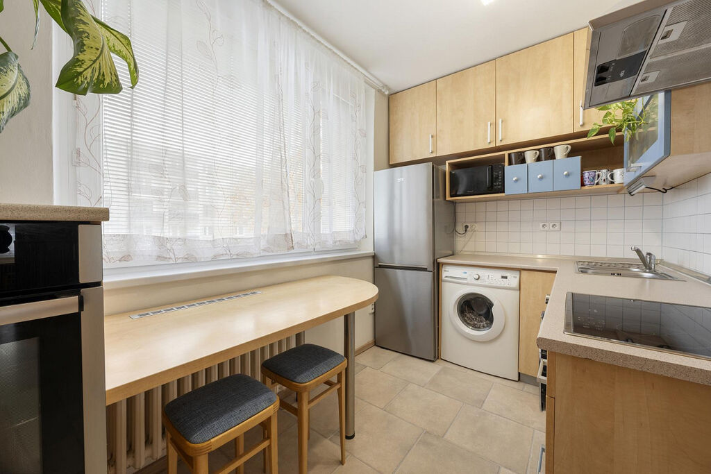 Samotný byt prošel v roce 2008 částečnou rekonstrukcí, při které bylo vyměněno zděné jádro. Všechny prostory jsou vybaveny plovoucí podlahou, která dodává bytu moderní vzhled a zároveň je snadno udržovatelná. V koupelně najdete dlažbu a obklady, které jsou odolné vůči vlhkosti a snadno se čistí.