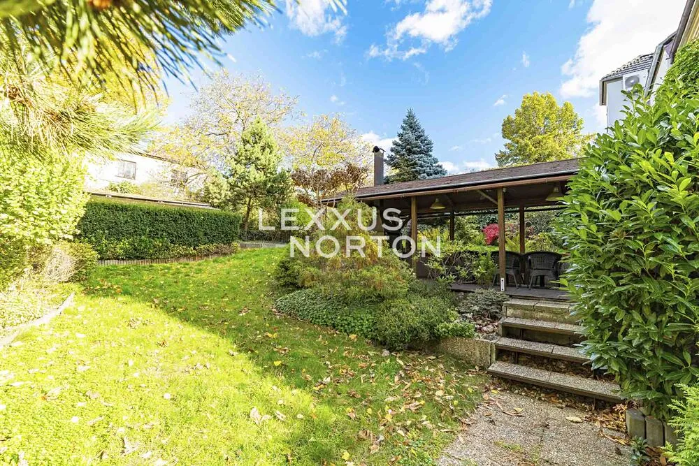 Za domem se nachází velká zahrada se vzrostlými stromy a krytým altánem s grilem. Zeleň oddělující sousední pozemky nabízí cenné soukromí a příjemné posezení po většinu roku.
