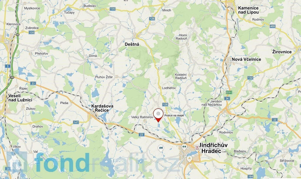 Nabízíme k prodeji pozemek o výměře 874 m² nedaleko obce Velký Ratmírov v okrese Jindřichův Hradec v Jihočeském kraji. Velký Ratmírov leží 6 km severozápadně od Jindřichova Hradce. Dle katastru nemovitostí je pozemek evidován jako trvalý travní porost. Pozemek je zasazen do přírody plné polí luk a rybníků, je situován vedle vodní plochy Panský Zármutek. Velký Ratmírov je i názvem katastrálního území. V případě zájmu nás neváhejte kontaktovat.
