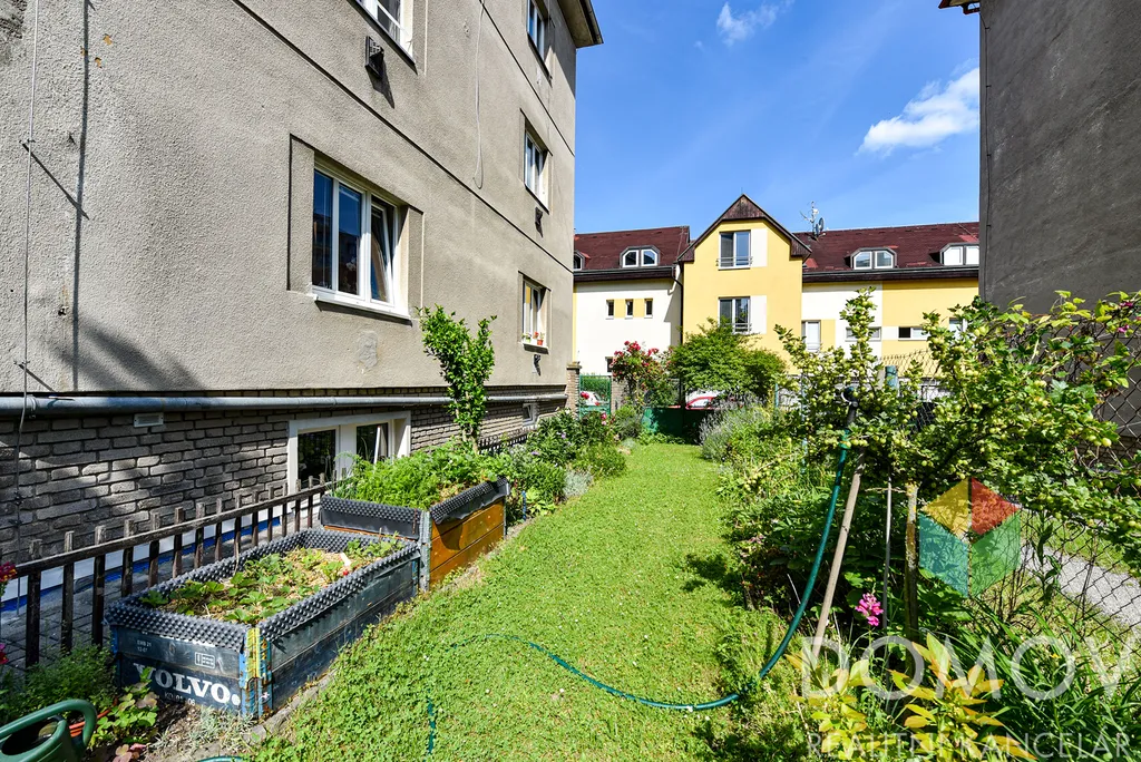 V podlahové ploše bytu je započítána sklepní kóje o velikosti 5,4 m². Další úložný prostor je na půdě, ten lze využít na skladování věcí, které nepotřebujete denně. Obyvatelé domu mohou využívat společnou zahradu, ideální pro relaxaci nebo grilování. Součástí prodeje je také jedno kryté parkovací stání přímo na pozemku u domu.